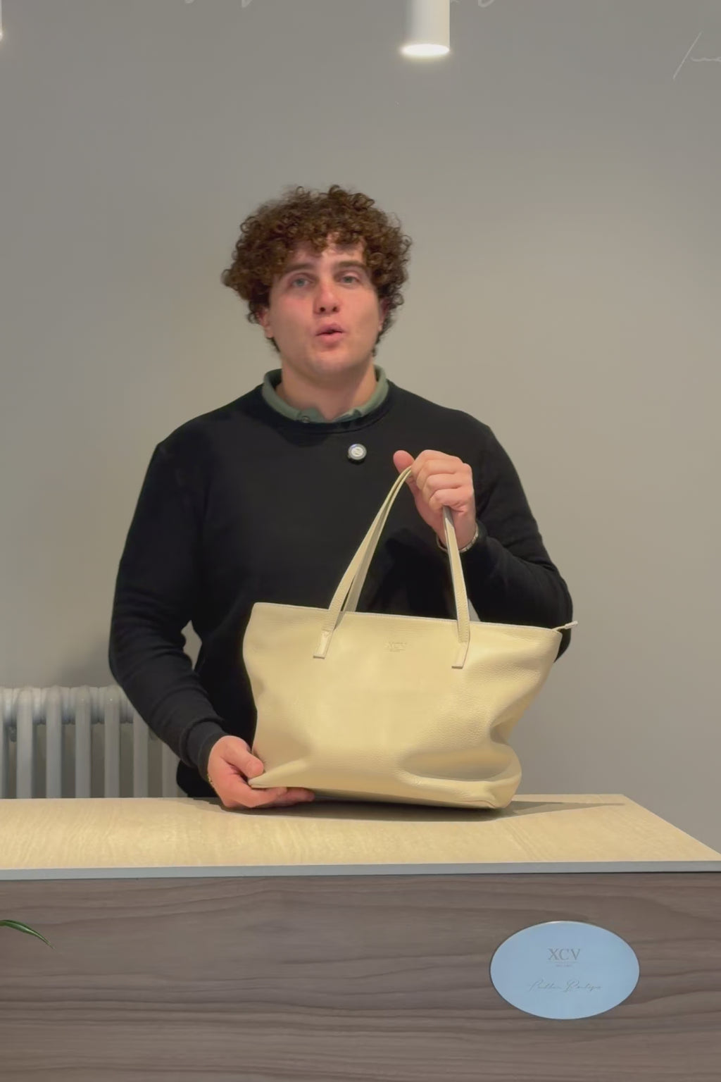 La borsa Cristina è perfetta per l’utilizzo di tutti i giorni, risulta leggera e molto capiente. È realizzata in pelle di vitello pregiata color ghiaccio ed è dotata di una lunga chiusura con zip esterna. Può essere indossata a mano oppure a spalla. L’interno è molto spazioso, foderato in tessuto nero, presenta una grande tasca piatta con zip e due tasche piatte in tessuto. Se cerchi una borsa a spalla resistente e di alta qualità Made in Italy il modello Cristina è la scelta perfetta.